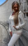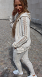 Feminin hættetrøje. 65 % polyester 35 % bomuld.