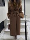 Trenchcoat i smuk chokolade brun med fake Fur detaljer og bindebånd i livet
