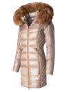 Smuk figursyet dunjakke med pels og guld lynlås.