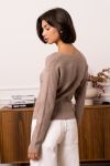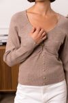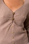 smuk bluse ved v uskæring i super stretchy materiale og med de fine guld knapper ned foran.